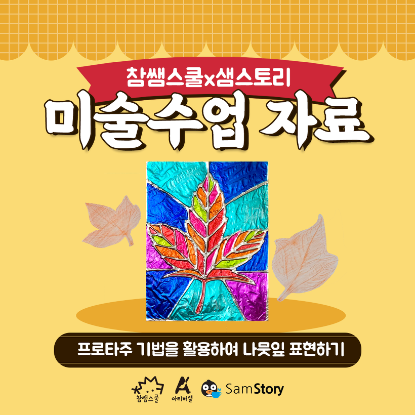 [샘스토리X참쌤스쿨X아티버셜] 🎨아티버셜과 함께 하는 미술 수업 자료🎨 가을!하면 떠오르는 낙엽🍂 🍁프로타주 기법을 활용하여 낙엽을 표현해 보아요! 방법은 간단하지만 결과물은 GOOD 😍활동자료와 도안은 샘스토리에 있어요! 👉🏼샘스토리로 고고!