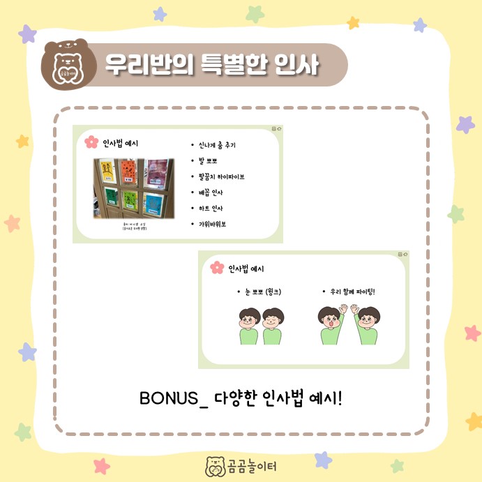 우리반의 특별한 인사로 아이들을 맞이한다면, 신학기 적응은 문제 없어요!