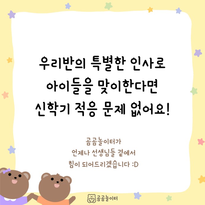 우리반의 특별한 인사로 아이들을 맞이한다면, 신학기 적응은 문제 없어요!