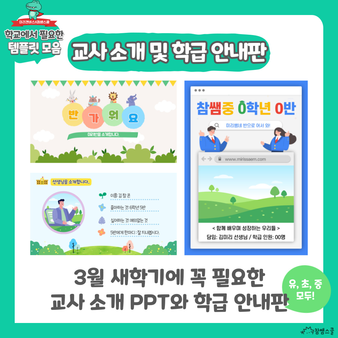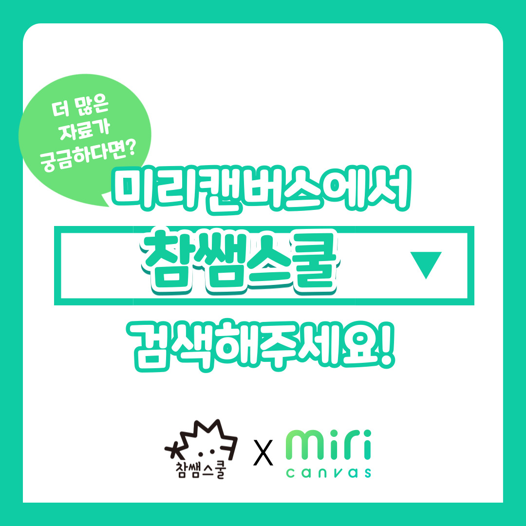 미리캔버스에서 '참쌤스쿨'만 검색하면 바로 나옵니다 🙌