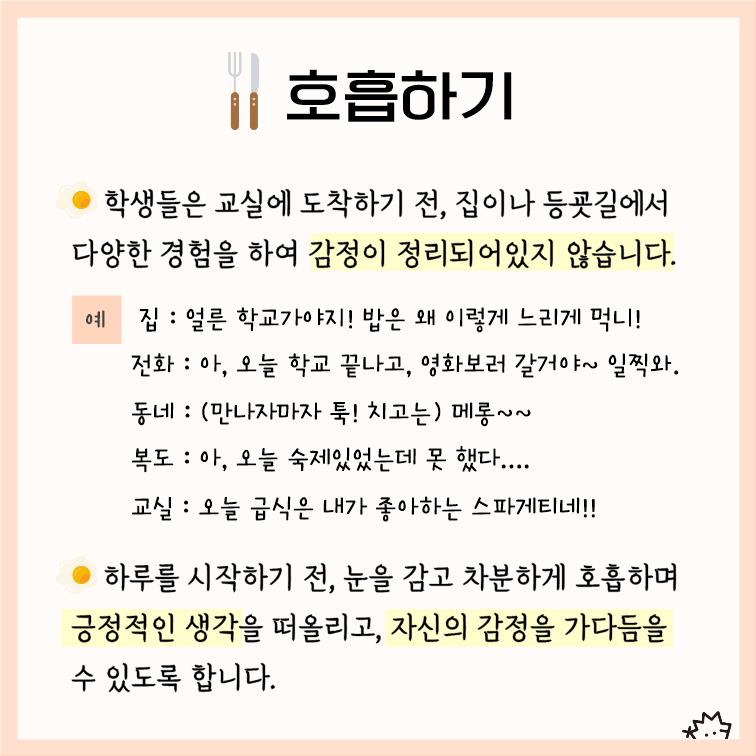학생들의 격해진 감정을 가라앉히는 팁과 감정 루틴으로 활용할 수 있는 활동까지!👼알찬 정보를 가득 담은 레시피🍳