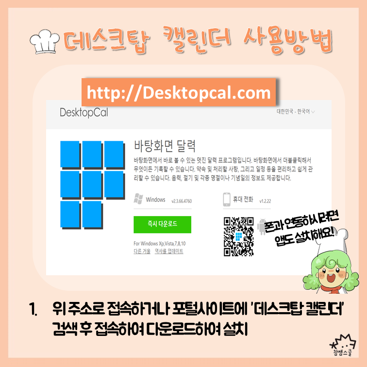 언제나 나와 함께해 줄 데스크탑 캘린더만 깔면 걱정 끝!