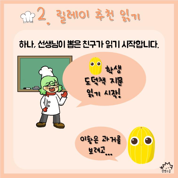 2. '릴레이 추천' 읽기 : 내 다음 순서로 목소리가 크고 또렷한 00이가 읽어주면 좋겠어!👀 다음 읽을 친구를 지목하고 왜 지목했는지 이유를 이야기해요!