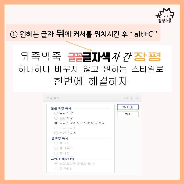 ⌨️ 글자문단셀속성 한번에 통일! Alt + C 알트씨! 😎