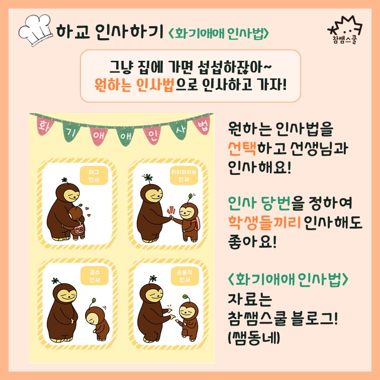 2. 하교 인사하기(화기애애 인사법) : 매번 똑같은 인사는 그만! 원하는 인사법을 선택하여 인사해요☺️