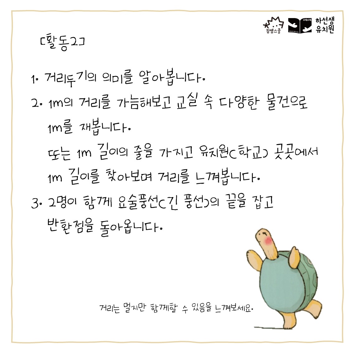 그 거리를 눈으로 확인해보고 코로나예방수칙을 다시 떠올려요.