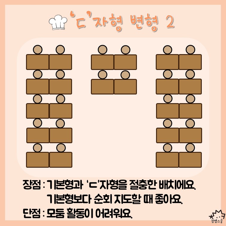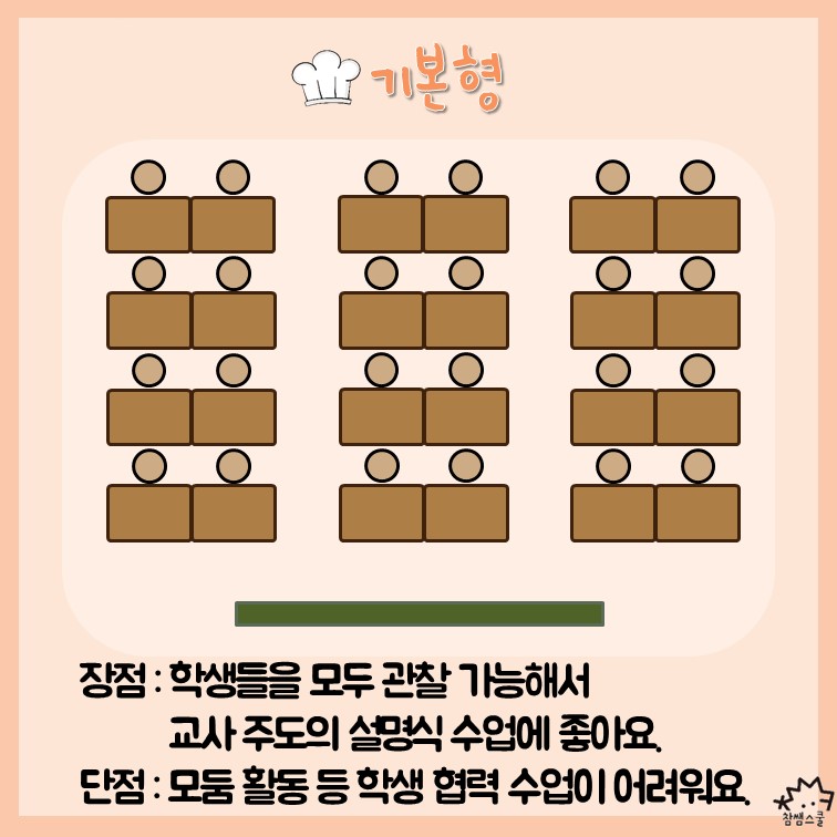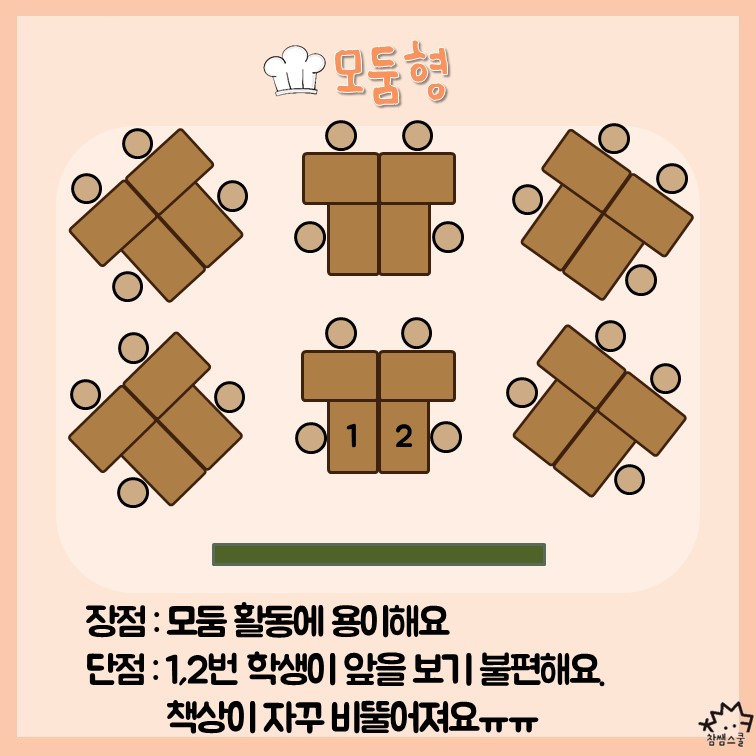 👉🏻이제 선생님의 수업 스타일과 학생들의 배움 능력에 맞게 책상 배치를 달리 해보세요!