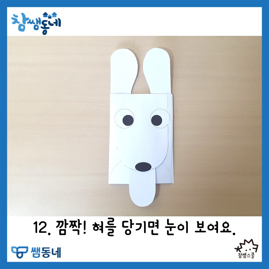 혀를 잡아 당기면 까꿍 하고 눈이 보여요🐶
