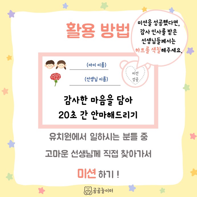 미션 하면서 아이들도 즐거움을 느끼고, 선생님들도 뿌듯하고, 일석 이조겠죠?