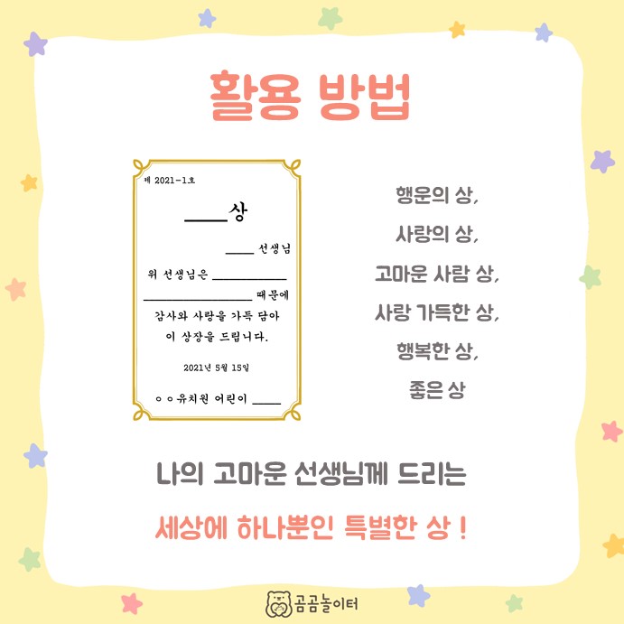 | 5월 상장모음zip -[곰곰놀이터] 5월 행사자료 (1) | 2021.05.01 |