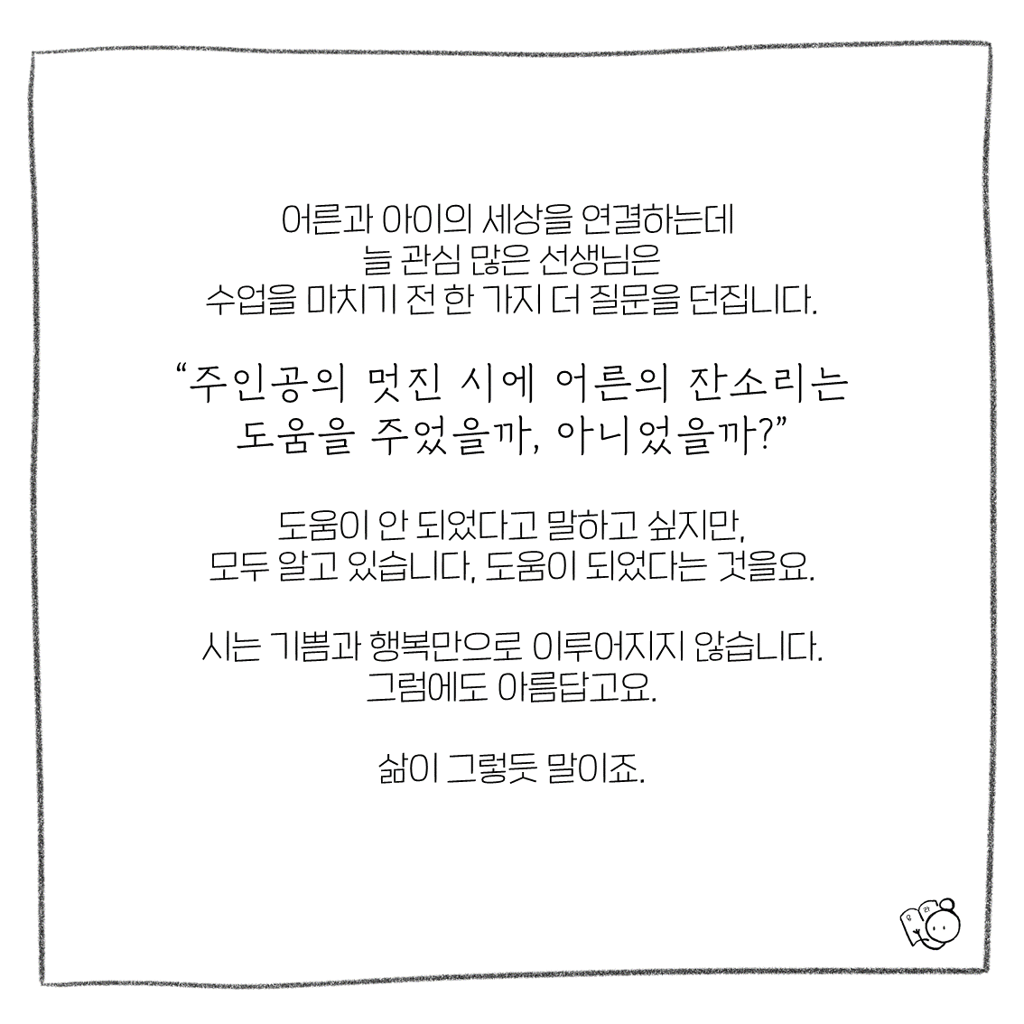 시의 즐거움을 어른이 되어서야 알게 된 저이기에 지겨워하는 아이들의 마음도 이해가 가고요.