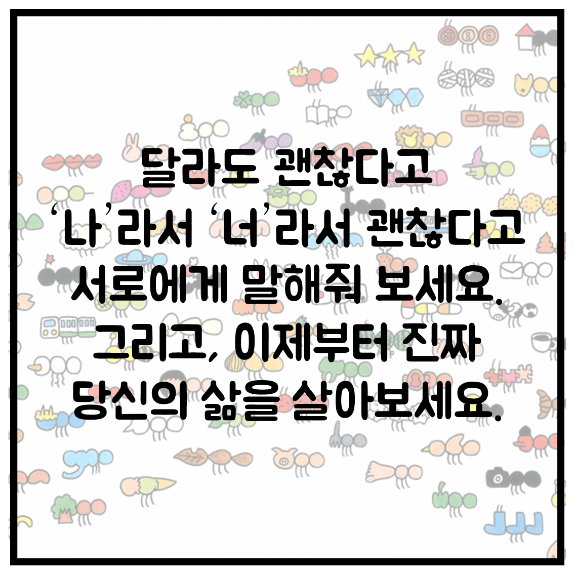 이 책을 읽고 [다름]이 주는 의미와 아름다움에 대해 생각해봅시다.