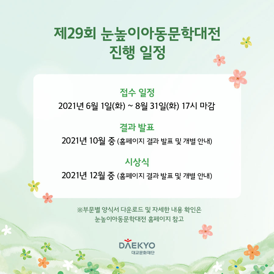 대교문화재단에서 매년 실시하는 눈높이아동문학대전이 올해도 두둥 🐱🏍