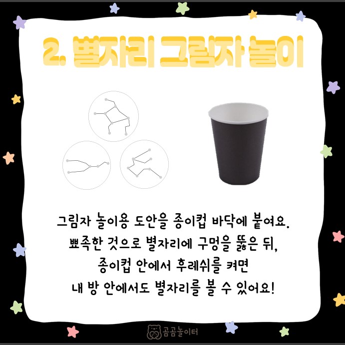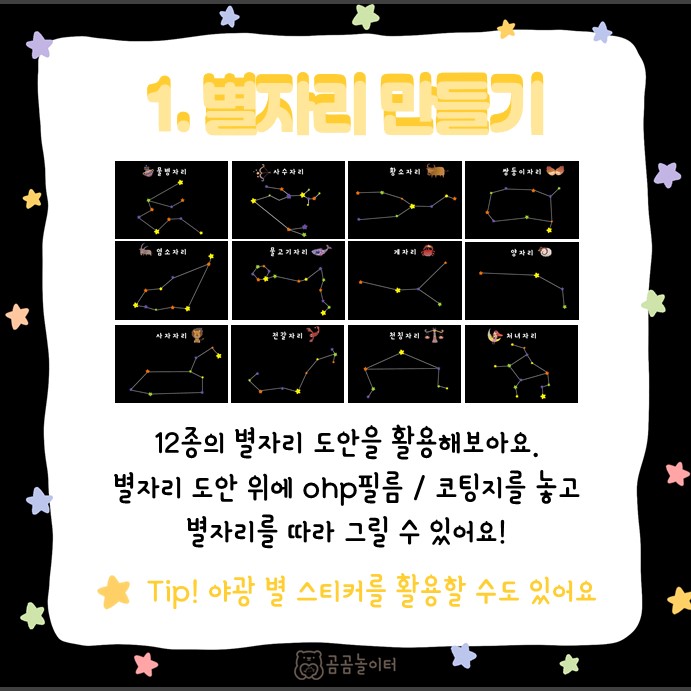 캠핑놀이의 확장놀이로 #별자리 놀이를 추천합니다 🌌