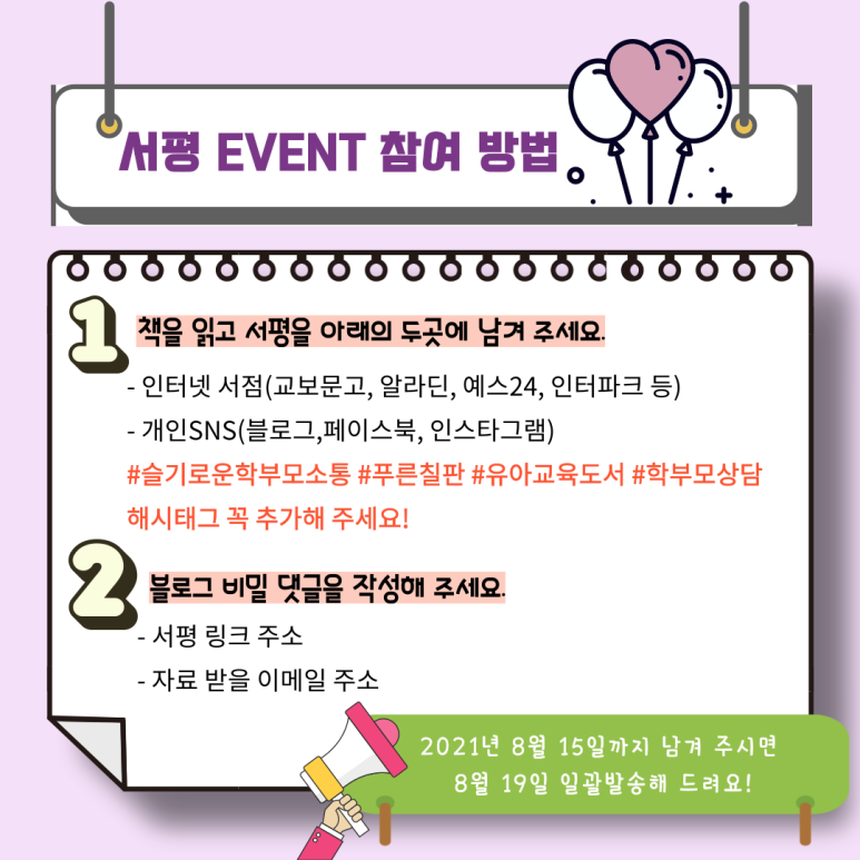 | 슬기로운 학부모 소통 🎤 서평 이벤트 📒 (0) | 2021.09.01 |