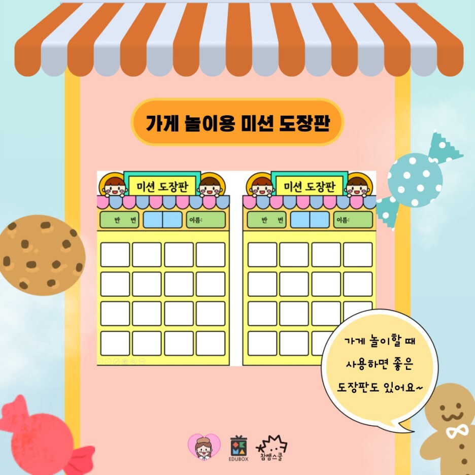 가게놀이용 도장판은 글자, 칸 모두 수정 가능하여 칭찬판으로 사용할 수도 있답니다!