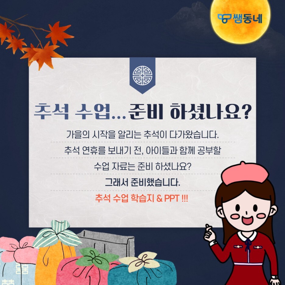 추석 수업 준비는 림쌤이 했어요! 선생님들은 아이들과 즐겁게 수업만 하세요.