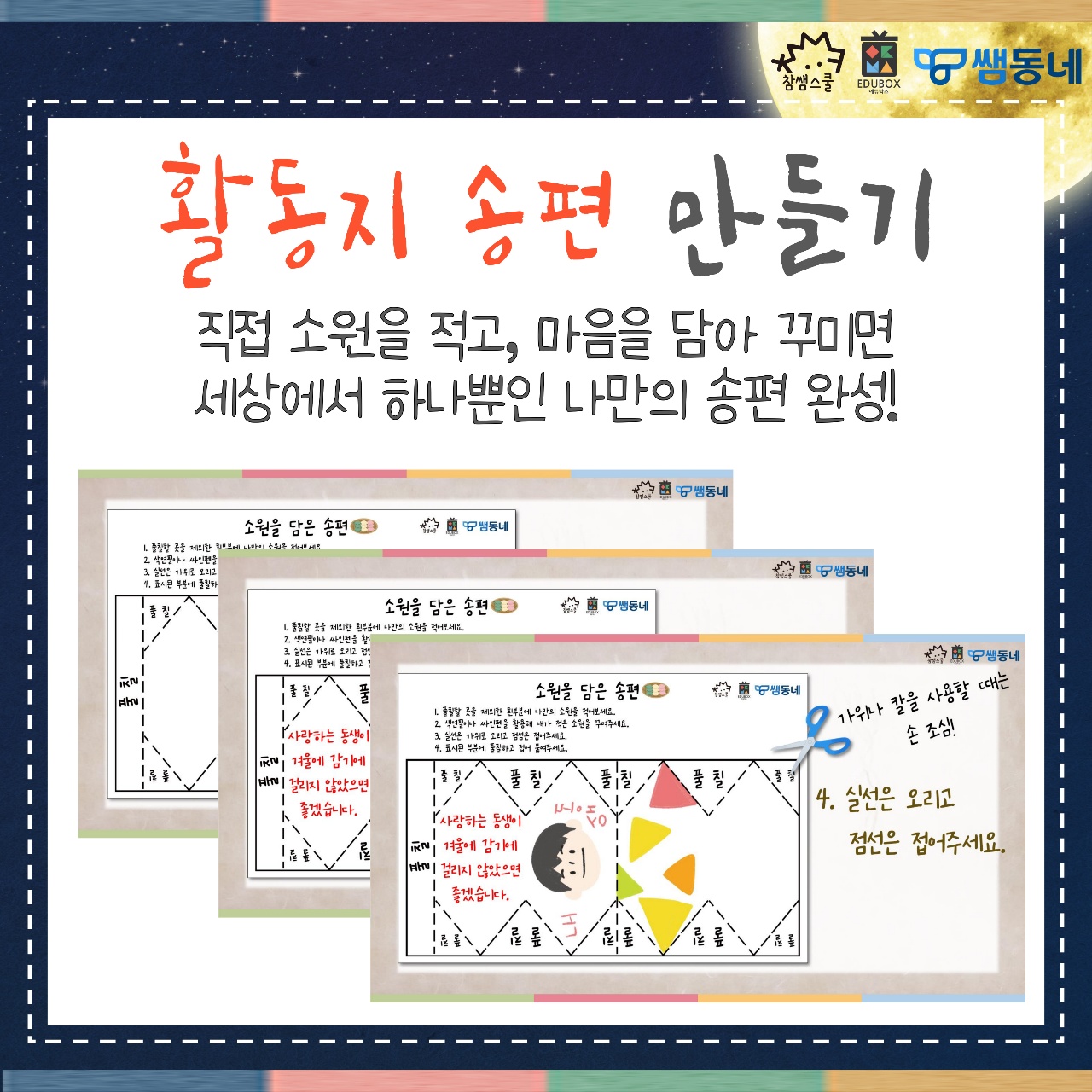 | [에듀박스] 요니쌤 작심한달 - 추석 소원 모빌 만들기 (1) | 2023.09.25 |