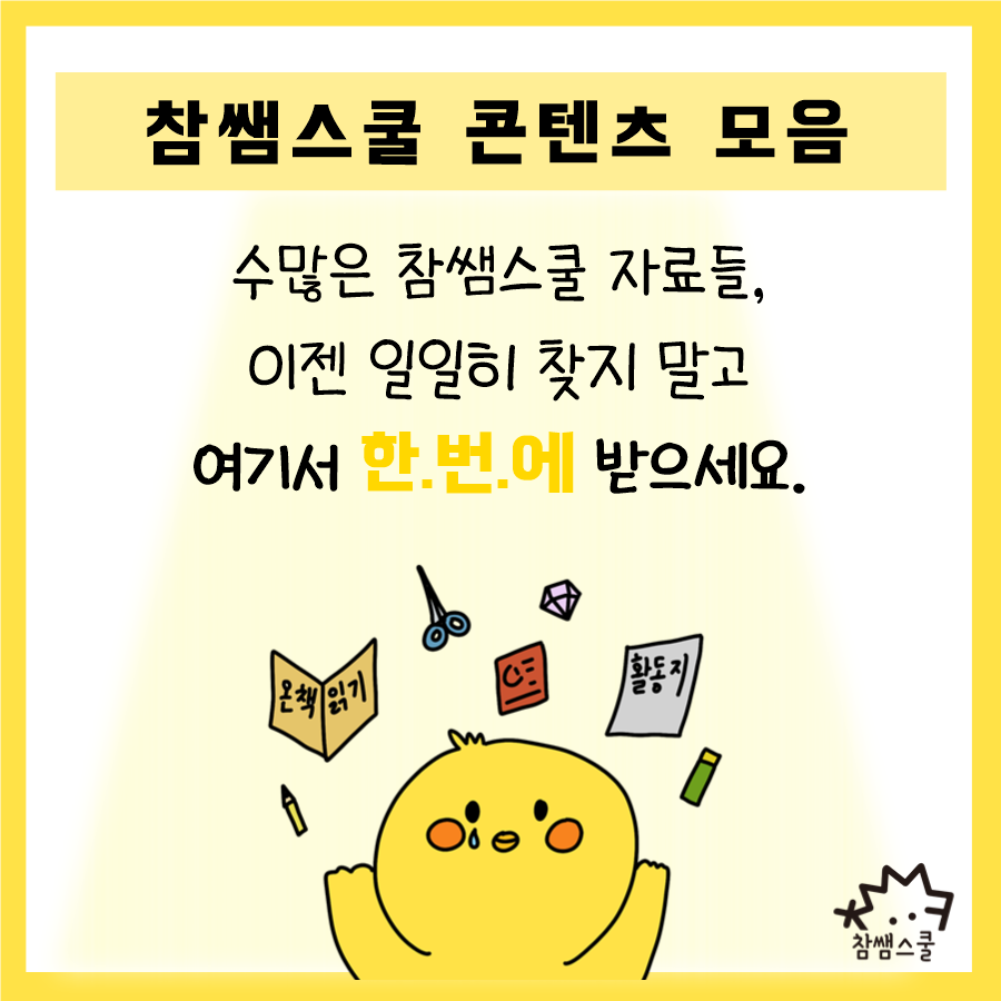 참쌤스쿨의 자료를 마구마구 활용하셔서 선생님들만의 멋진 교육과정, 수업, 교실을 만드셨으면 좋겠습니다 💖
