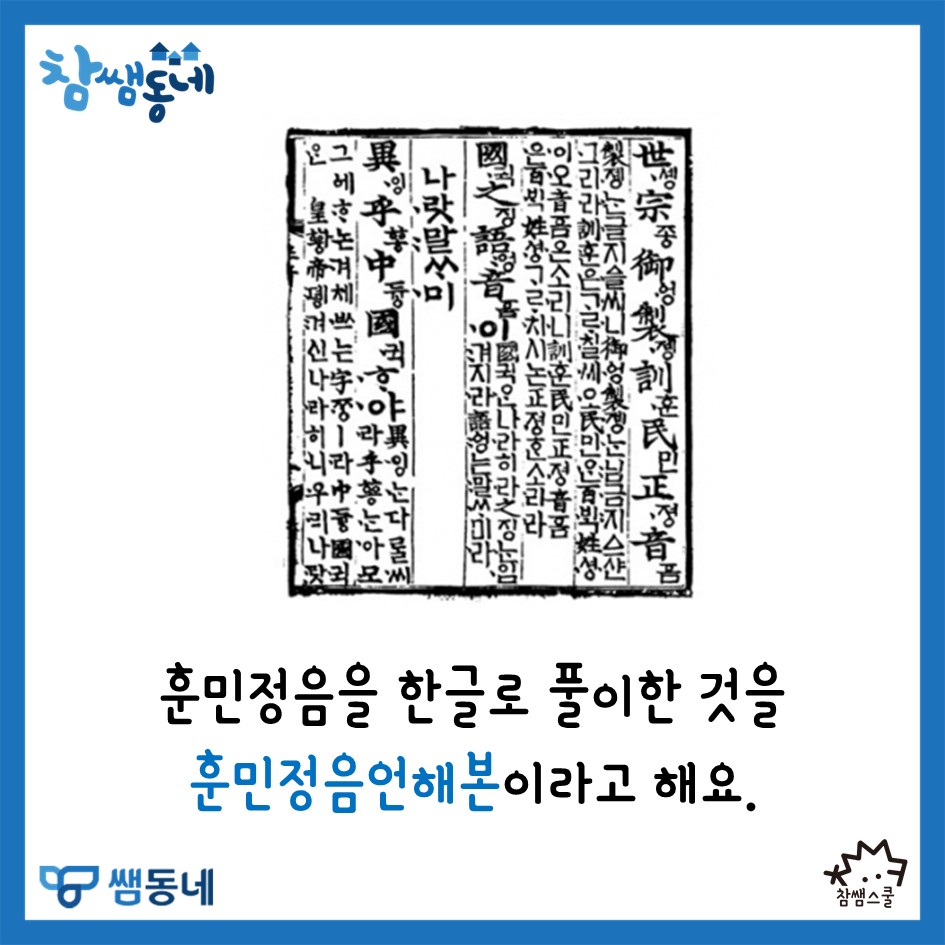 훈민정음언해본의 글자를 품은