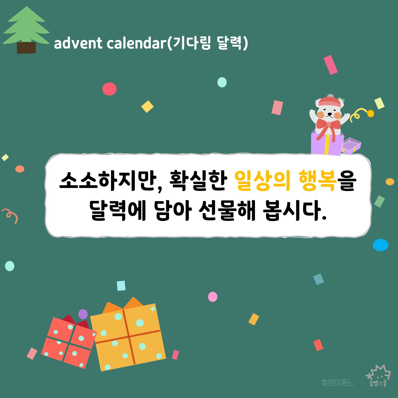 달력 뜯기를 12월 1일부터 해야하므로 11월 마지막주에 활동하기를 추천합니다^^