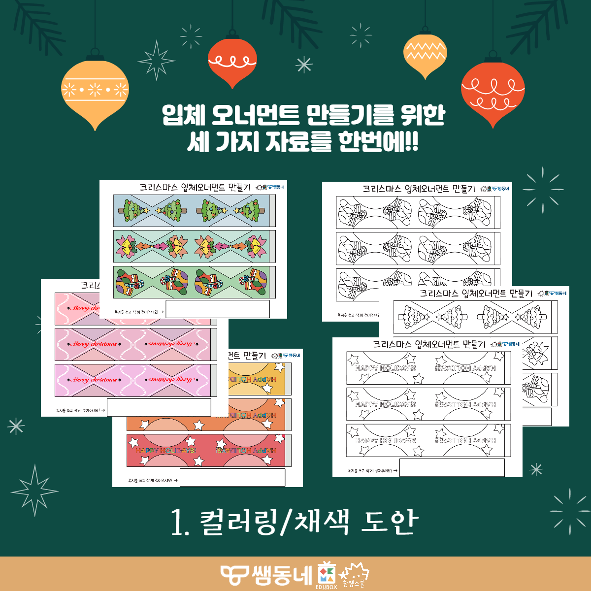 둥근 오너먼트, 각진 오너먼트 총 4가지 종류의 도안으로