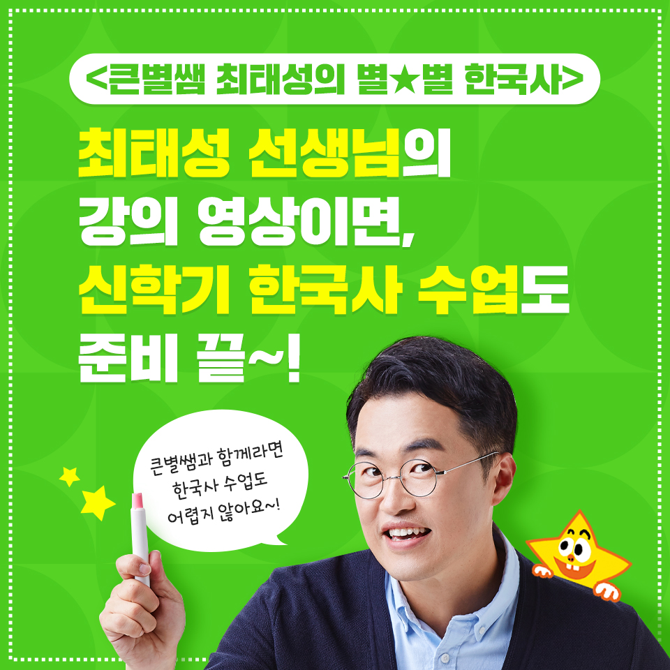 최태성 선생님의 강의 영상이면, 신학기 한국사 수업도 준비 끝~! 학교에서 <큰별쌤 최태성의 별★별 한국사> 영상으로 한국사 수업을 하실 초등교사 선생님을 모십니다~! ⭐ 모집 대상 : 현직 초