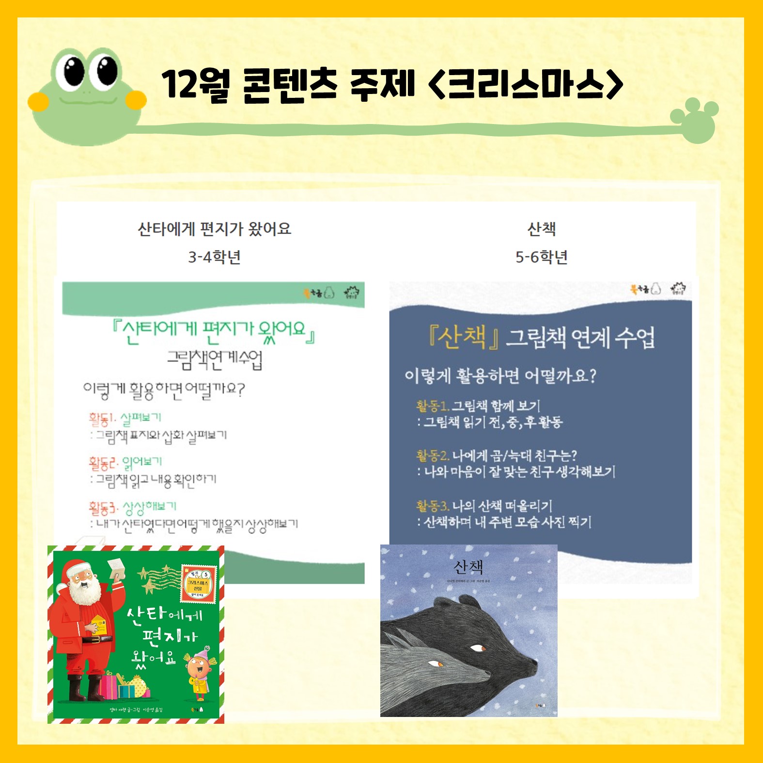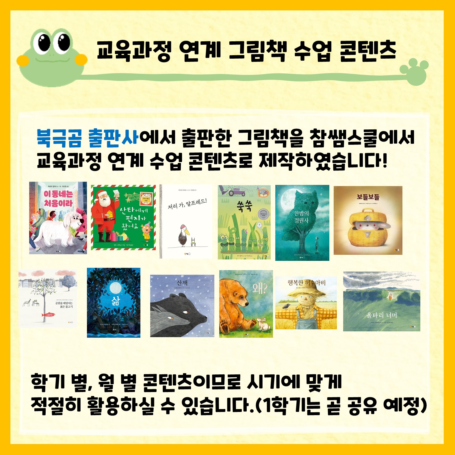 시기와 주제에 맞는 북극곰 출판사의 그림책을 토대로 참쌤스쿨에서 교육과정과 연계한 수업 자료를 제작하였습니다.