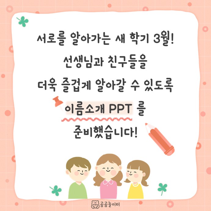 새 학기 첫 날, 곰곰놀이터와 함께 즐거운 소개시간을 가져보아요 ◡̈ !