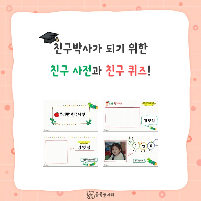 선생님 소개는 물론, 친구들 소개, 친구퀴즈까지