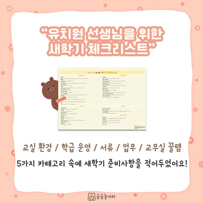 🌟유치원 선생님을 위한 새학기 체크리스트🌟를 가지고 왔어요!