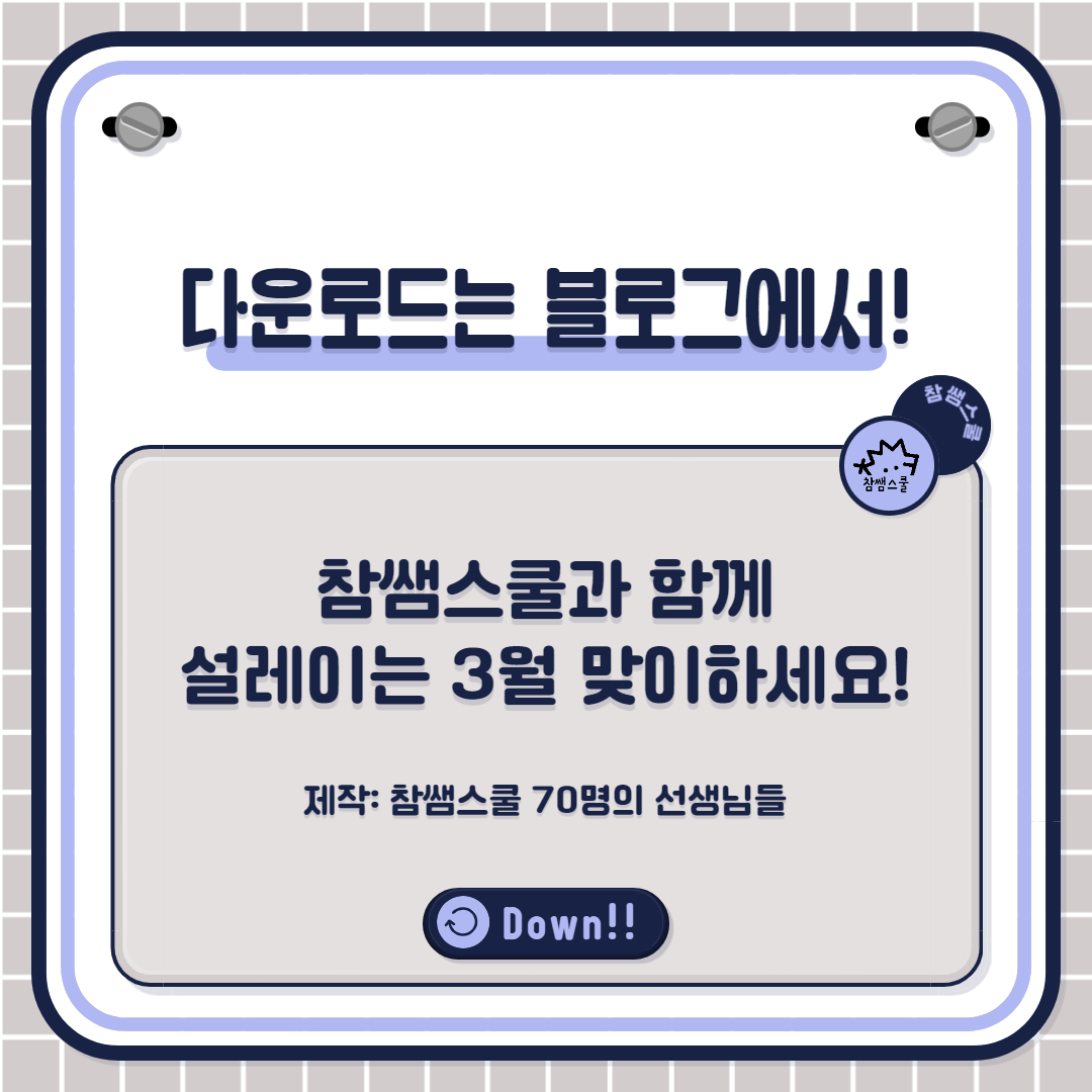 할 수 있도록 참쌤스쿨이 3월 첫만남 조각조각 자료를 모아선물해 드립니다!