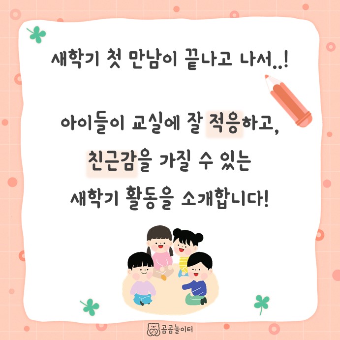 학기 초 우리반 아이들의 적응을 돕고, 친근감을 느낄 수 있는 새학기 활동!
