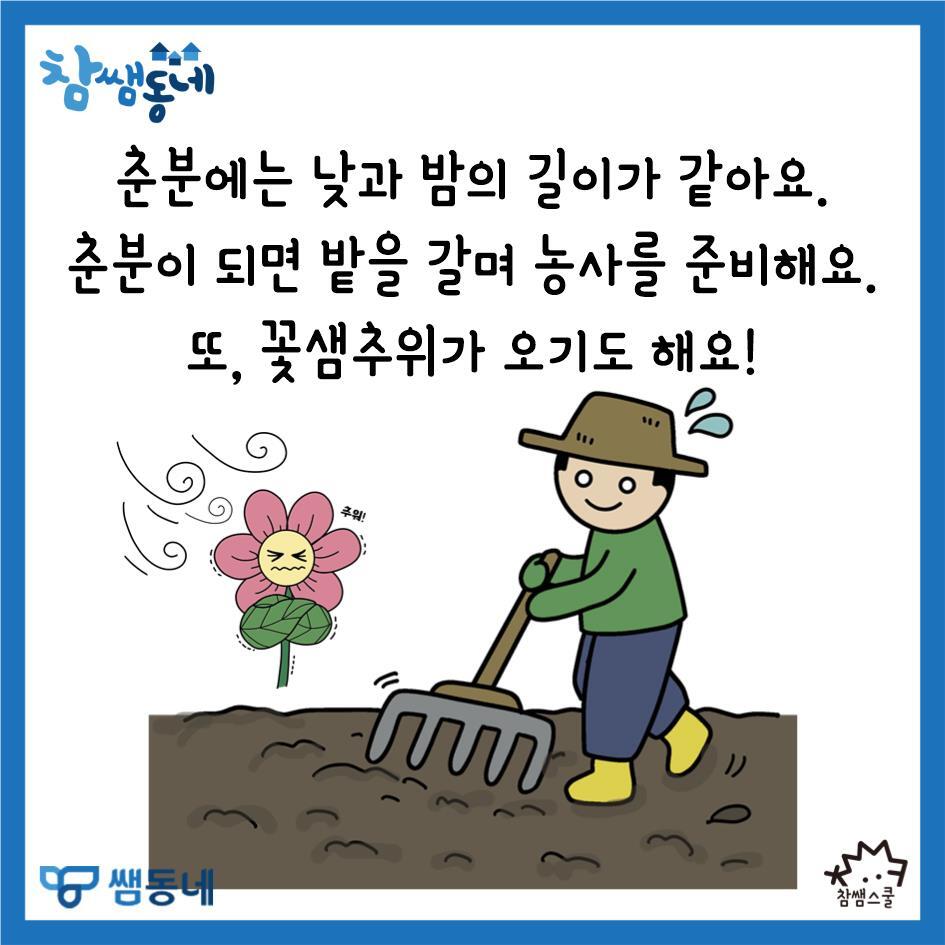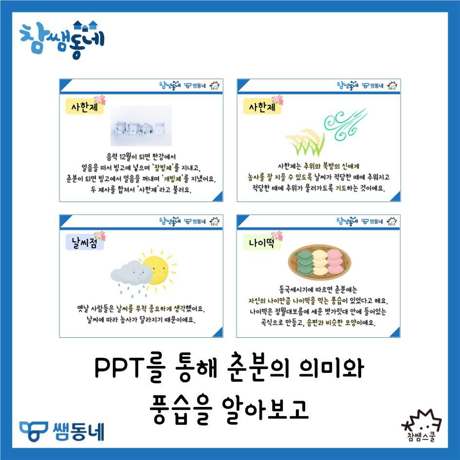 참쌤동네와 함께 PPT를 통해 춘분의 의미와 풍습에 대해 알아보고