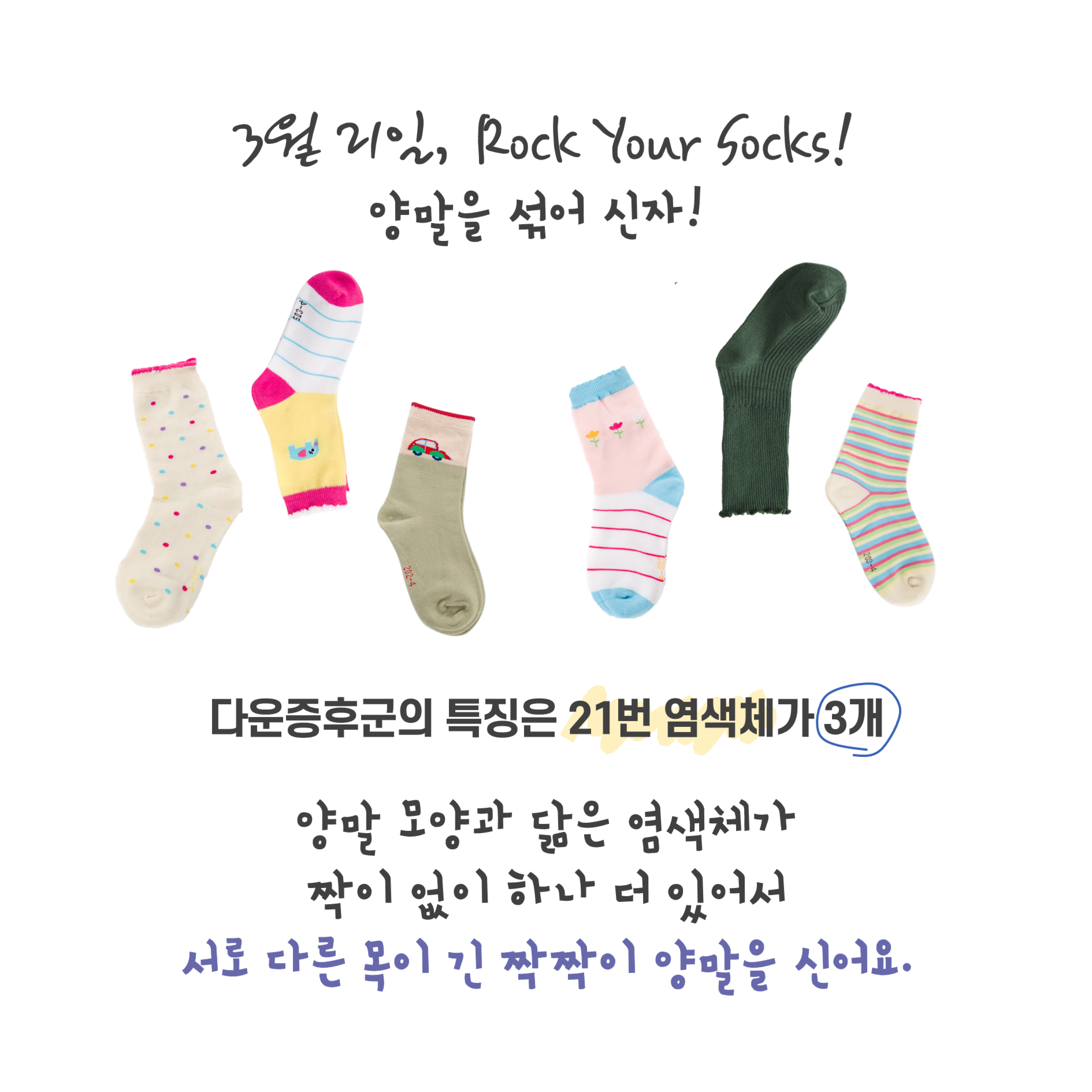 🧦🧦🧦 21 = 💛💙 여러분은 3월 21일이 어떤 날인지 알고 있나요? . 바로, ‘세계다운증후...