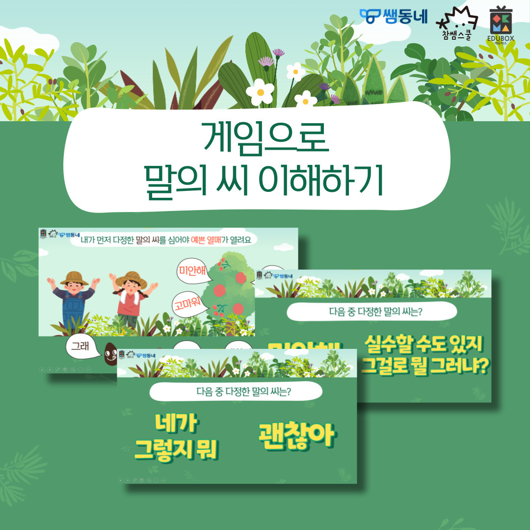 다양한 관점에서 아이들과 이야기 나누어 보고 게임으로 말의 씨를 이해해 보아요!