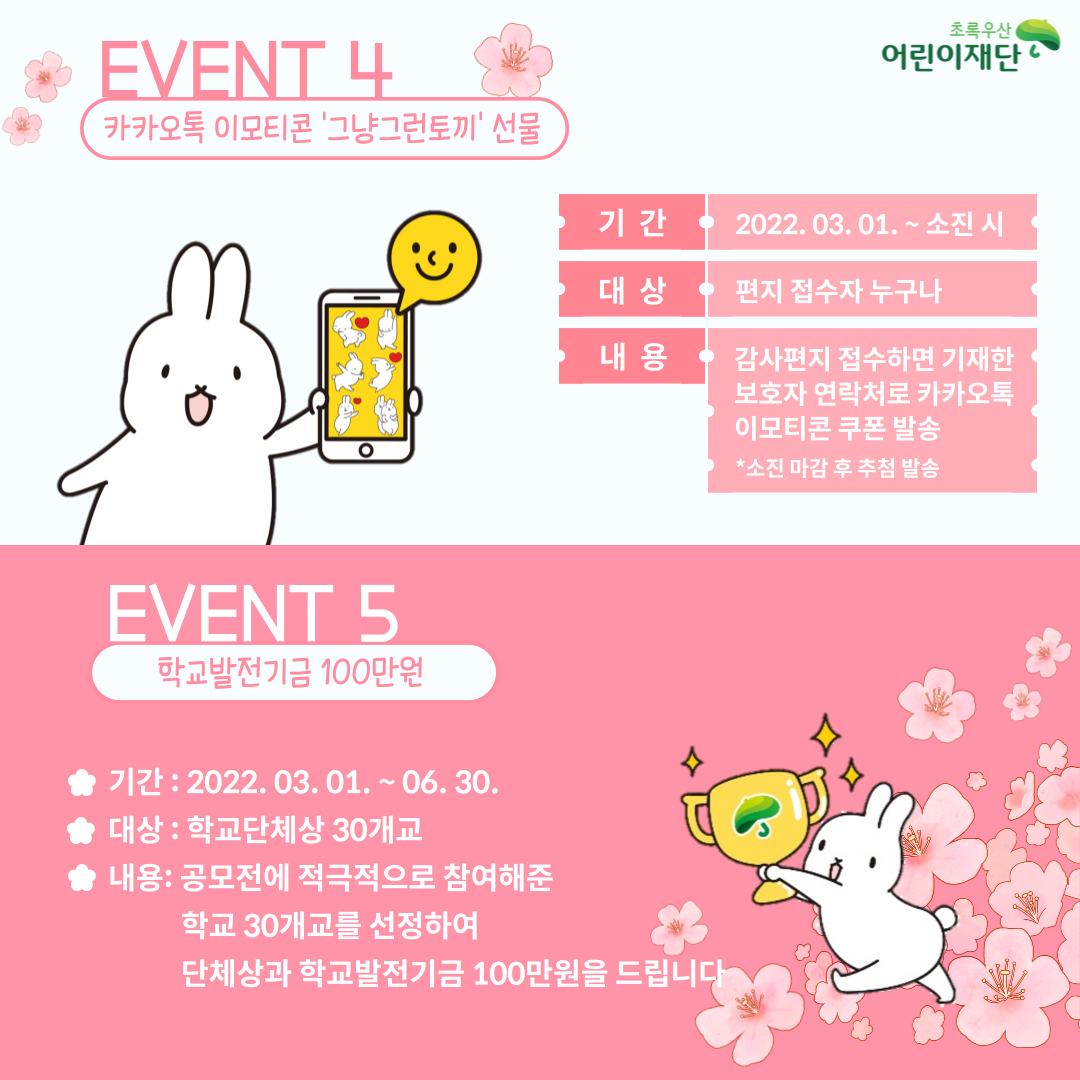👉혜택3. 감사편지를 접수하면 추첨을 통해 “그냥그런토끼 카카오 이모티콘” 발송