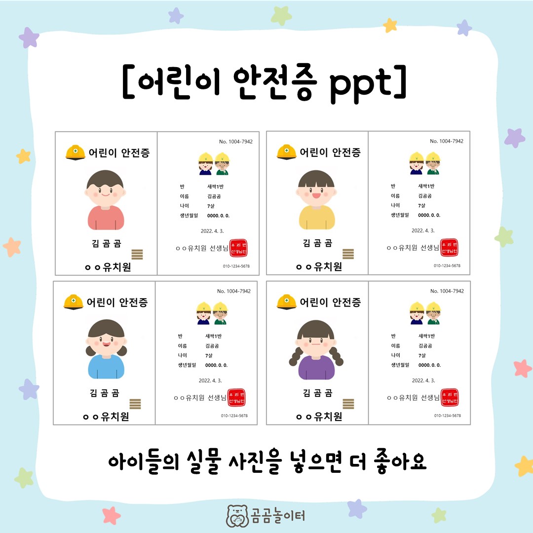 아이들의 모습이 담긴 어린이 안전증도 선물해주면 어떨까요?
