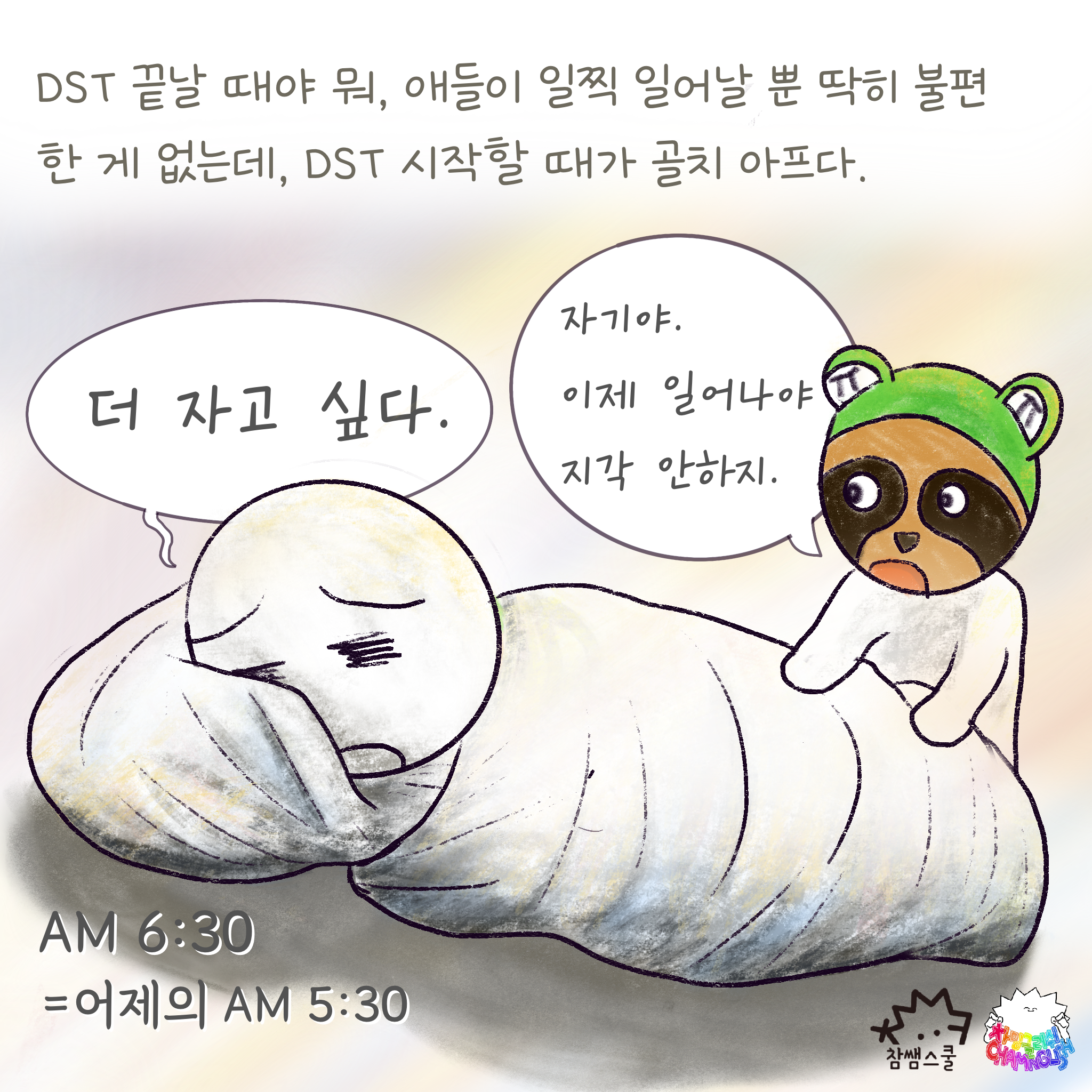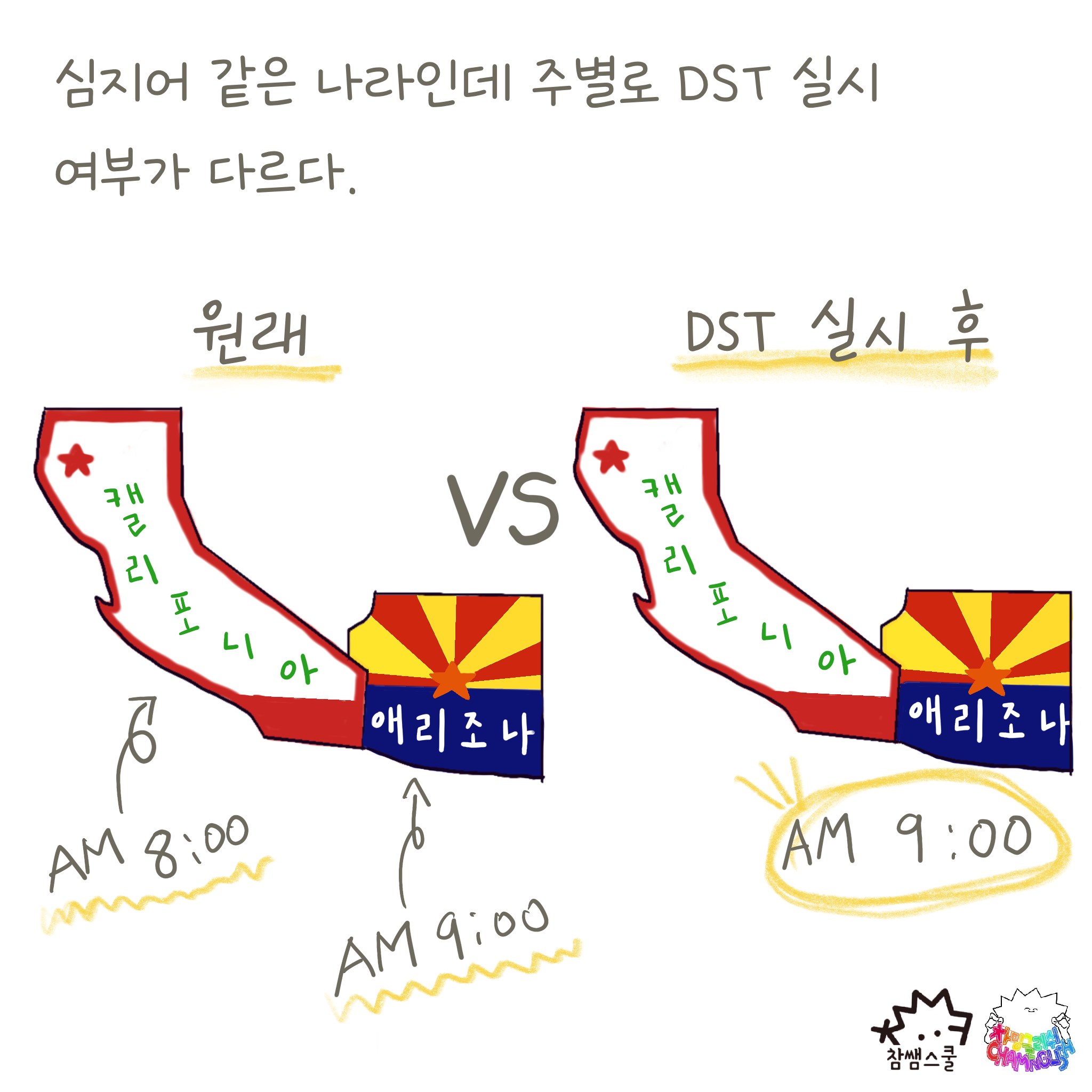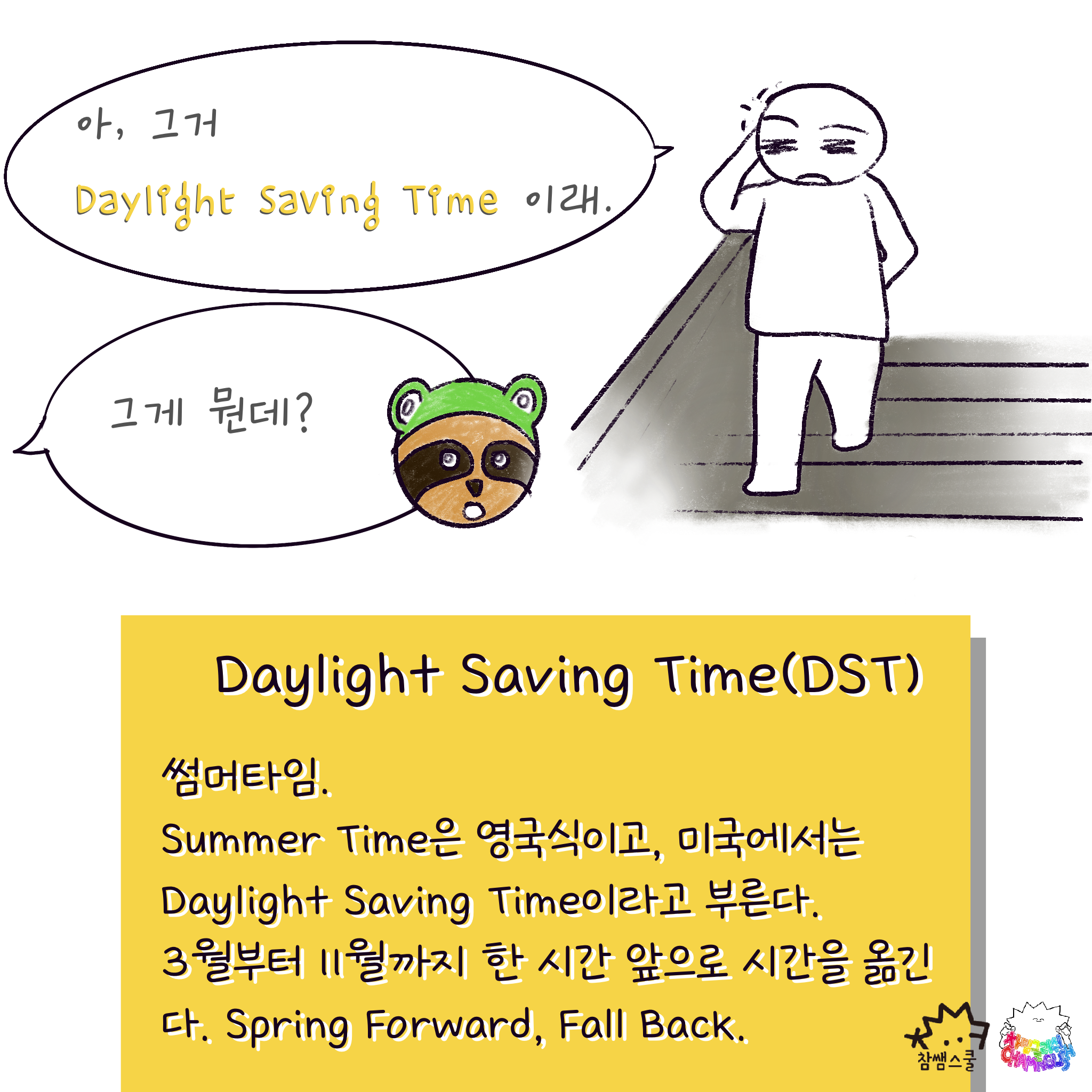 미국에서는 DST라고 불리는데요, ‘하슨생’님 께서 직접 DST와 관련해 겪은 에피소드를 재미있게 구성해주셨습니다!