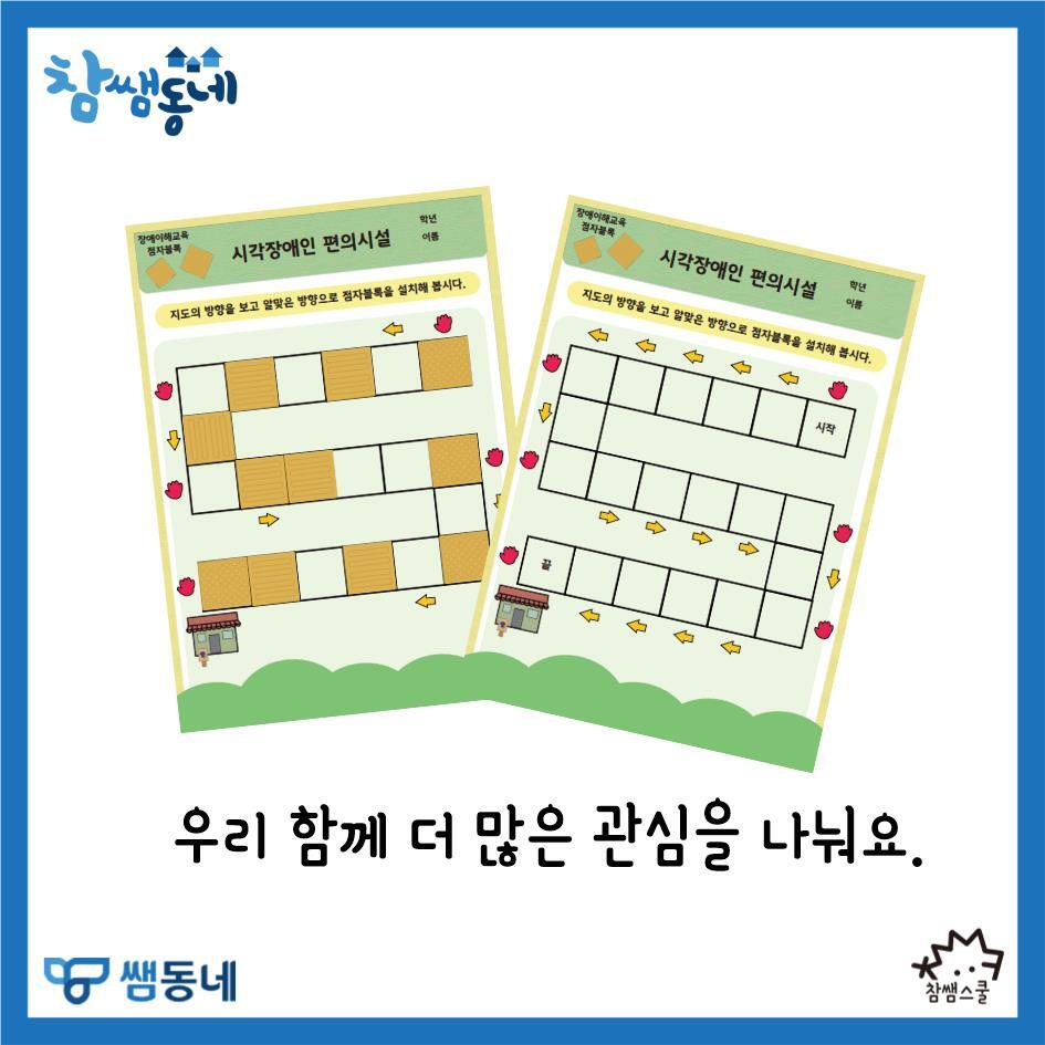 참쌤동네와 함께 점자블록이 필요한 곳에 알맞게 설치하는 활동을 해보아요.