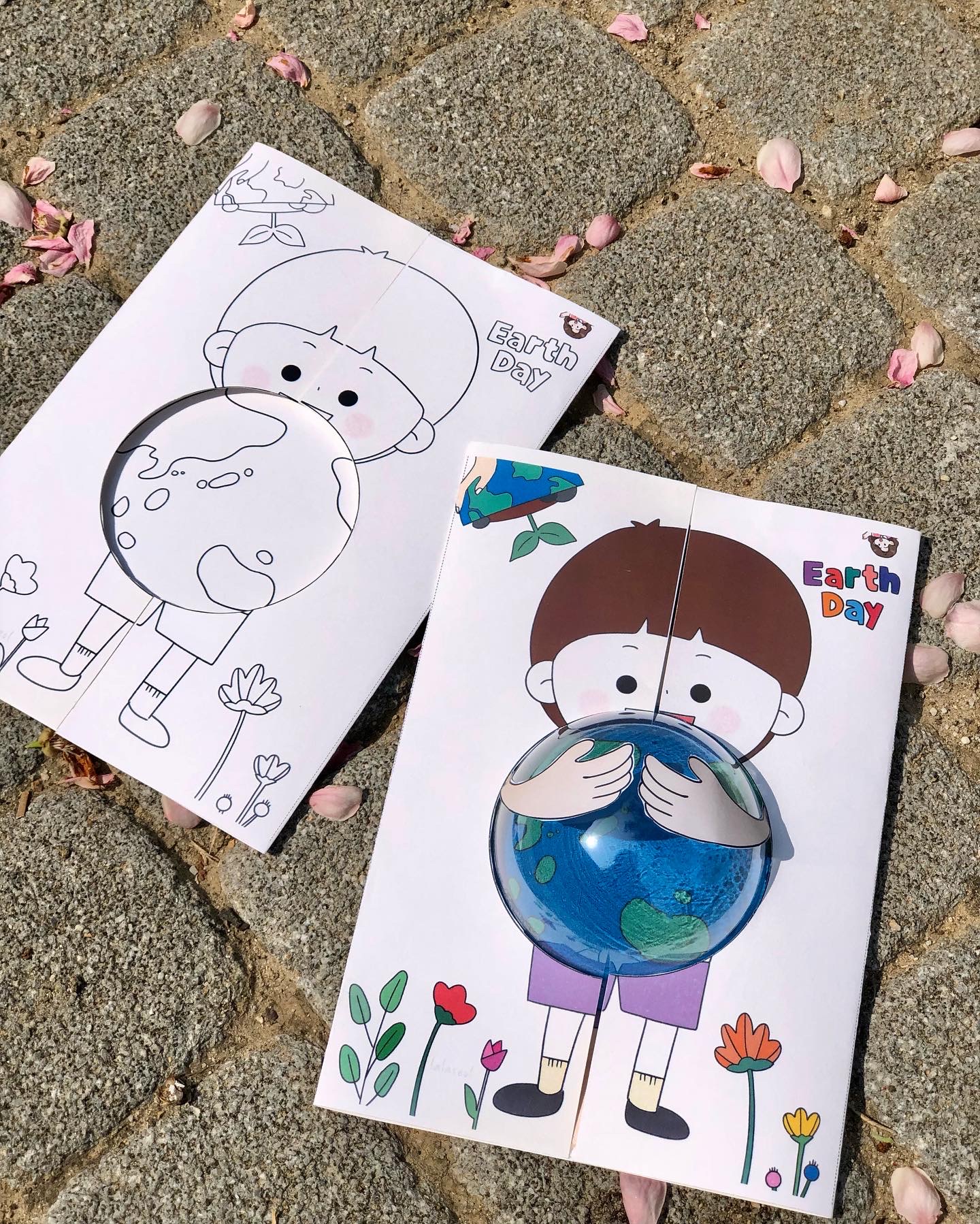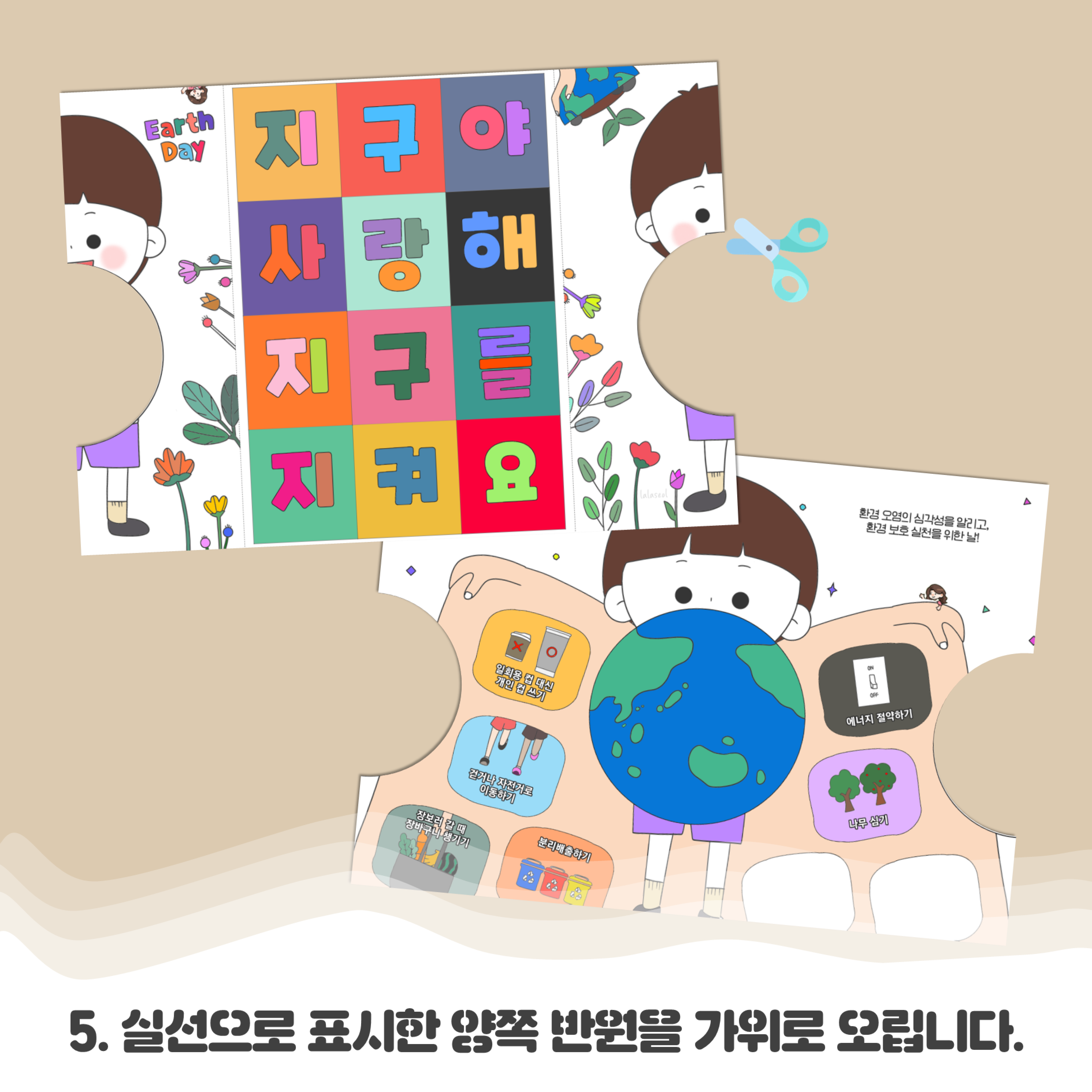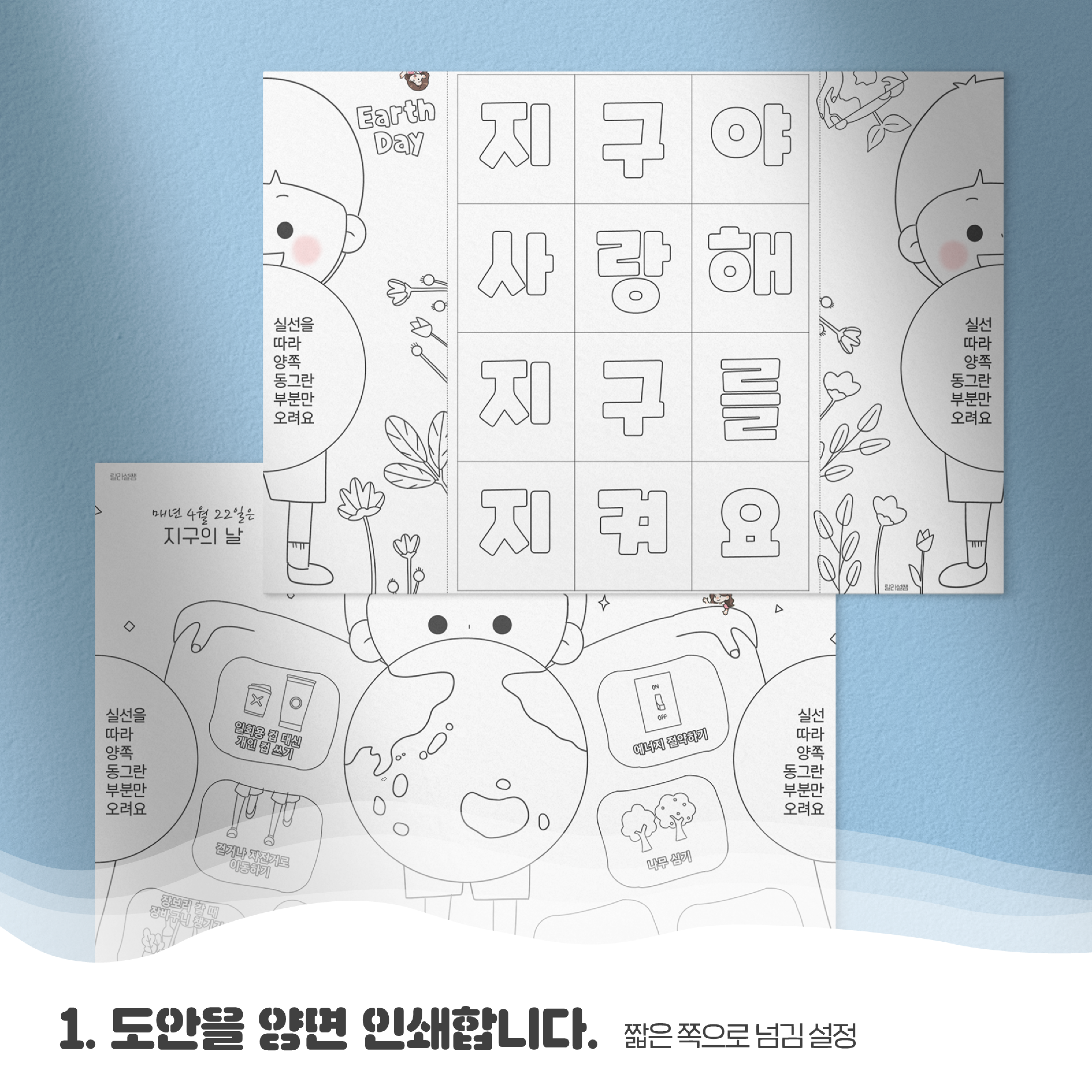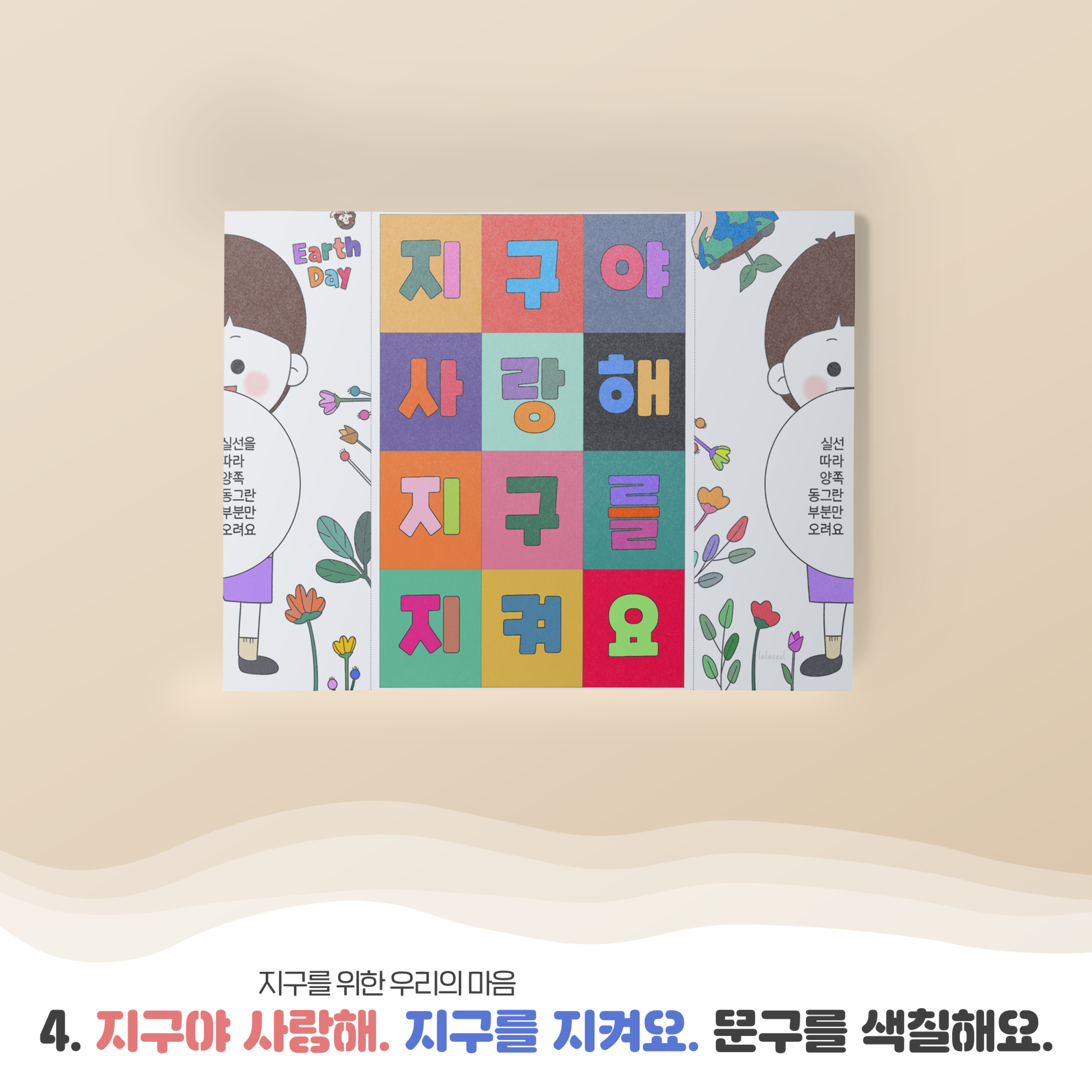 지구의 날 '지구 사랑 입체 카드 만들기' 도안(랄라설쌤)_컬러링 버전|짧은쪽넘김 양면 인쇄.pptx