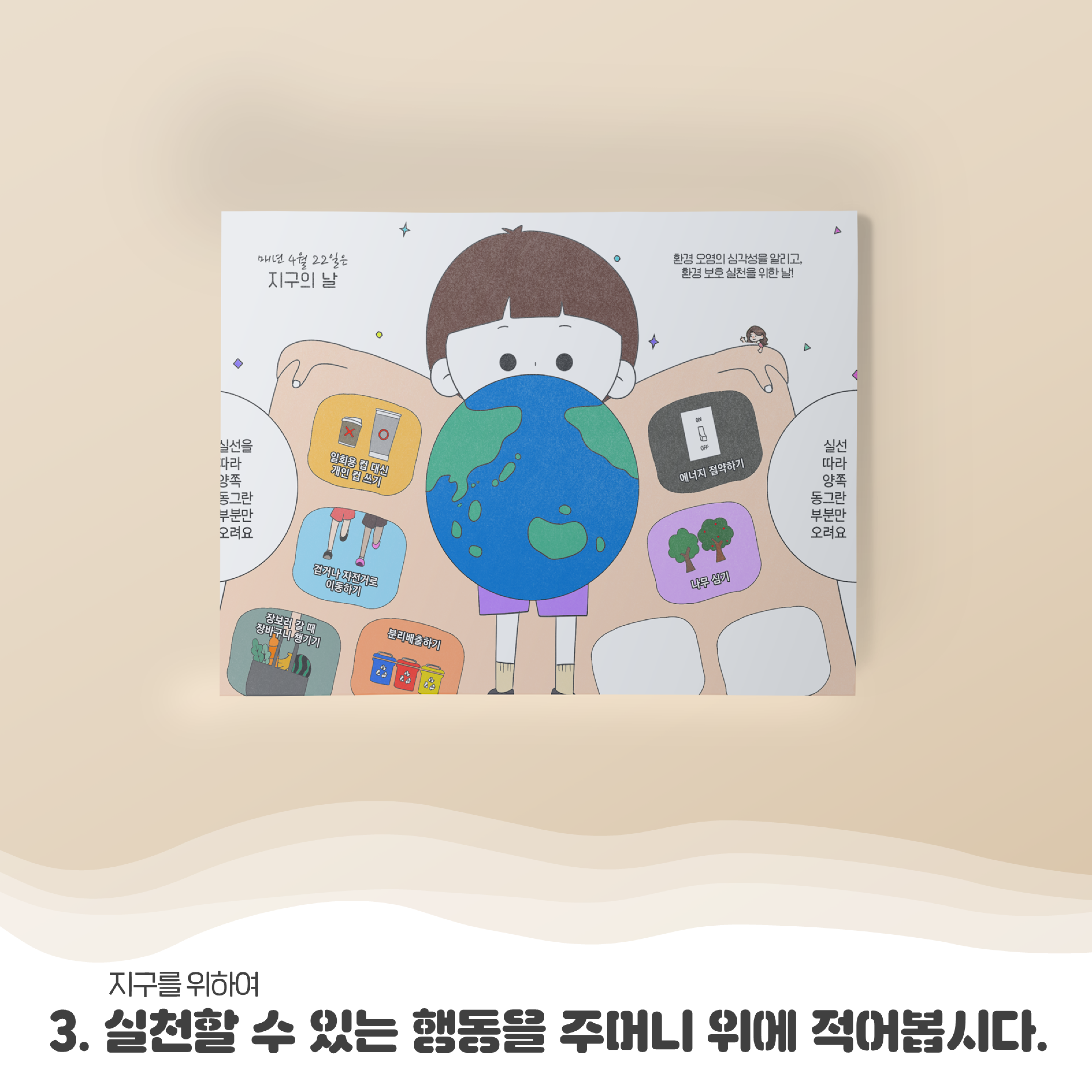 지구를 위해 실천할 수 있는 행동에 대해 생각해보고,