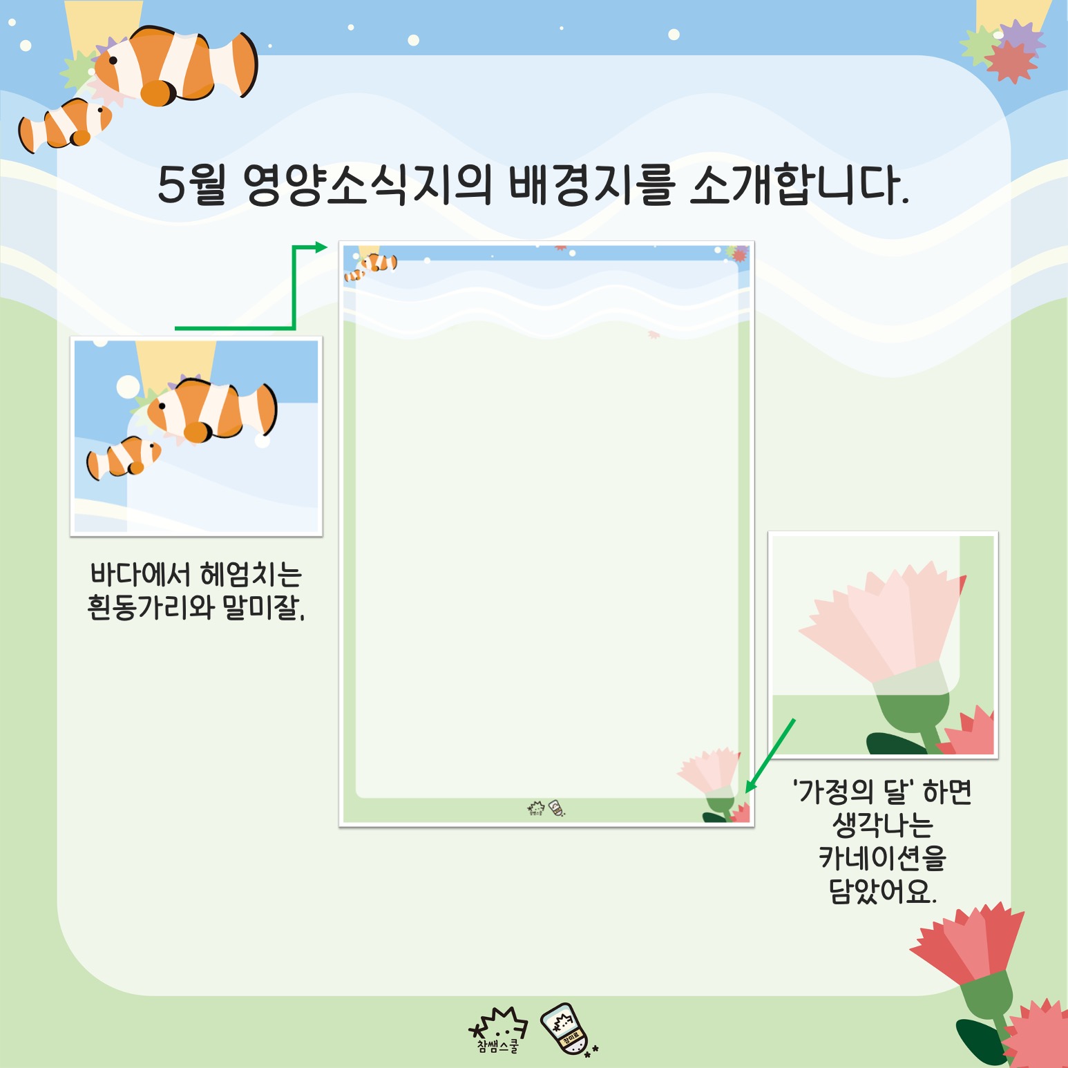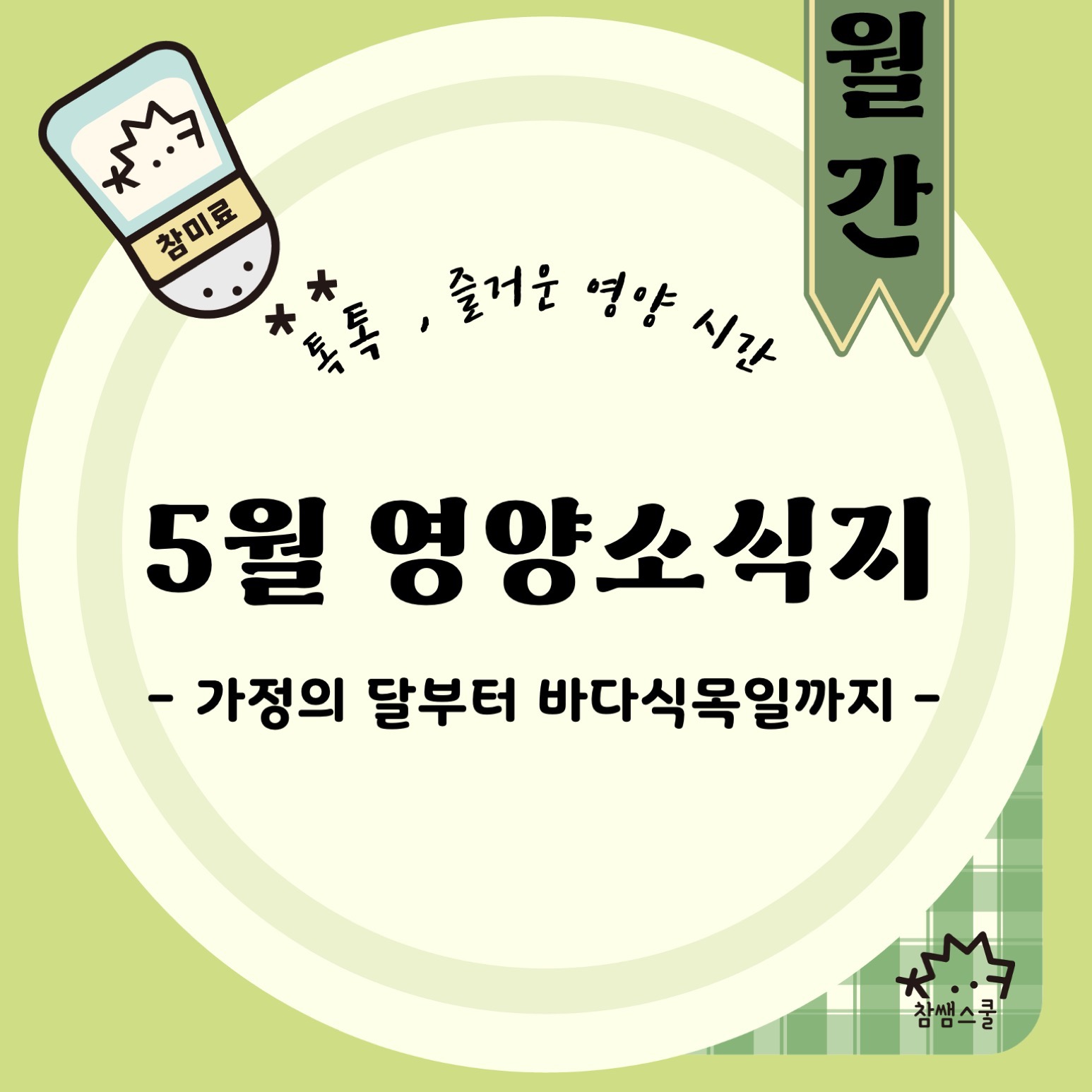 톡톡(똑똑)~! 🧂참미료가 5월에도 잊지않고 알찬 구성의 월간 영양소식지를 만들어왔습니다.