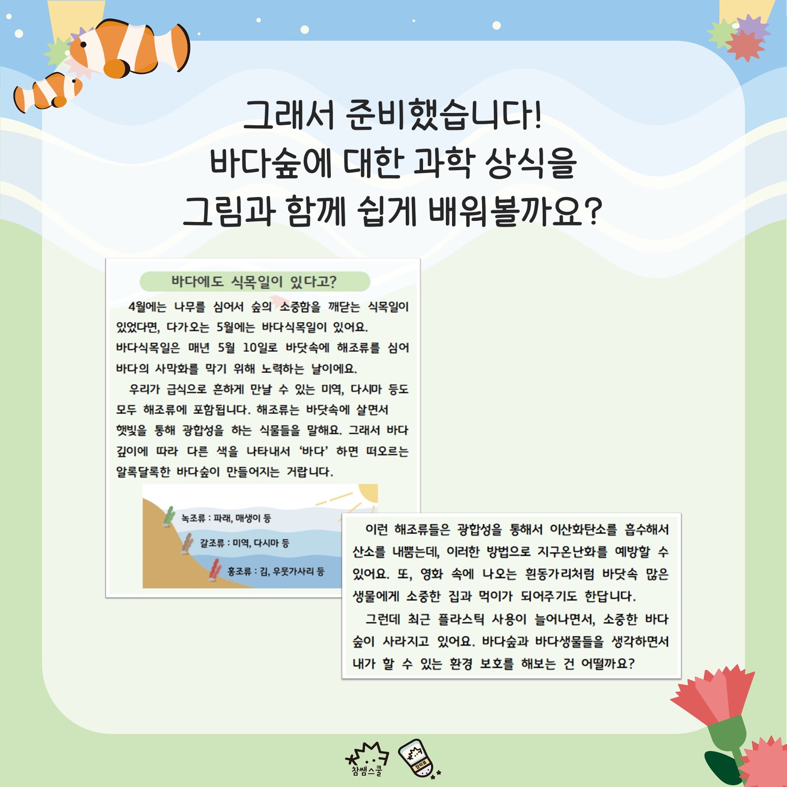 🌊 영양선생님 뿐만 아니라, 학급에서도 바다숲을 생각하면서 아이들과 함께 만들어보시는 건 어떠세요?