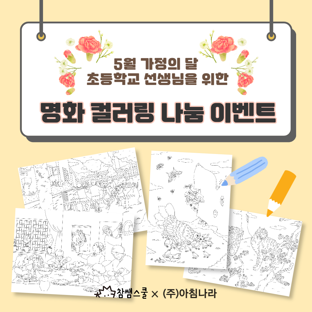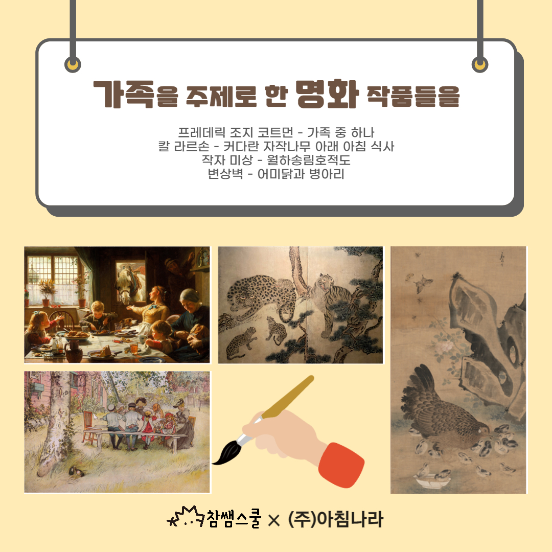 🌸참쌤스쿨과 아침나라 출판사가 5월 가정의 달을 맞이하여 가족을 주제로 한 “명화” 컬러링을 준비했습니다.
