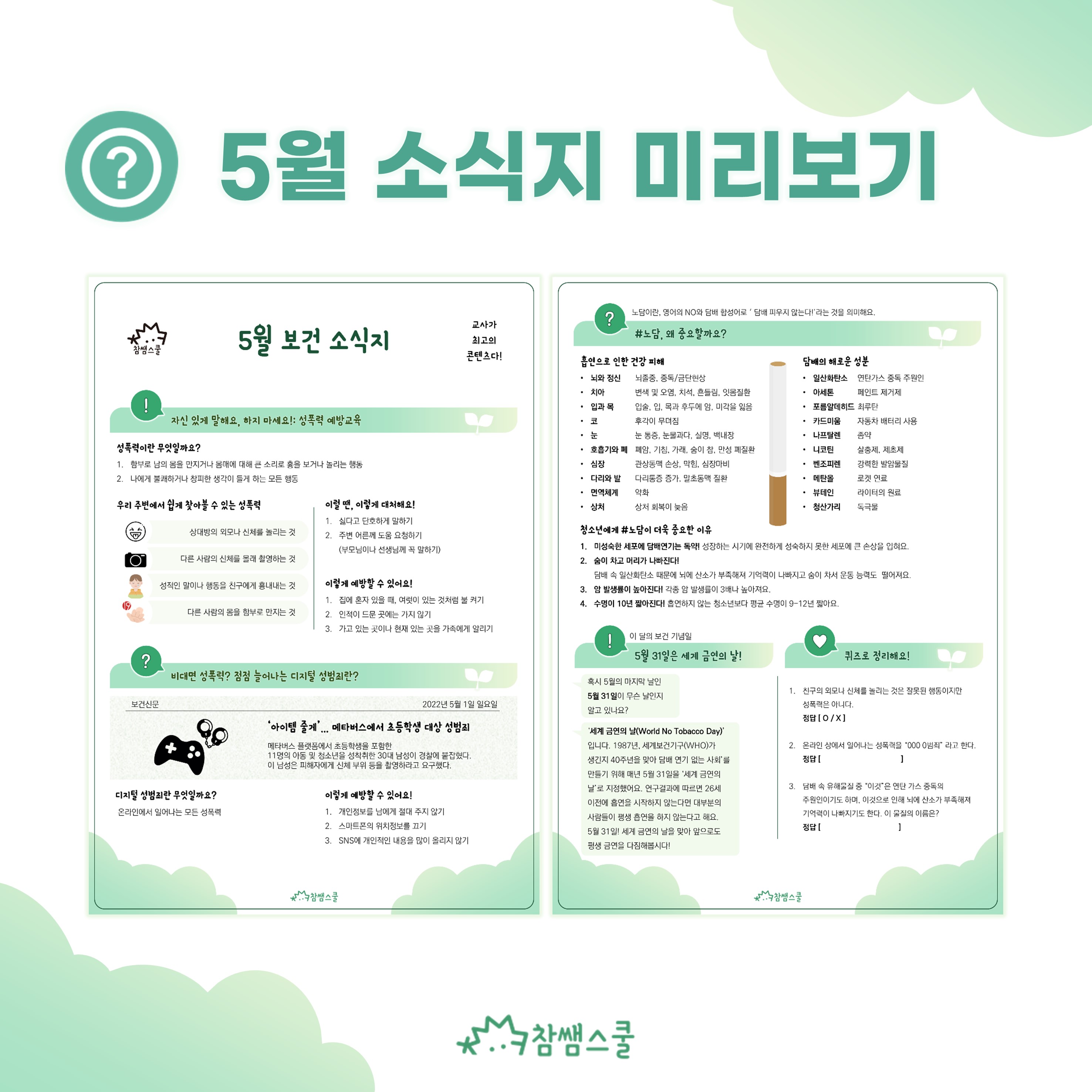 💡참쌤스쿨 6기 선생님들이 모여서 만든 5월의 보건 소식지가 돌아왔습니다!