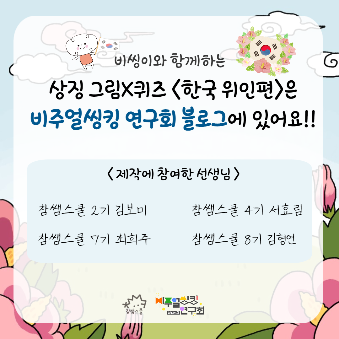 #참쌤스쿨 #참쌤스쿨_비주얼씽킹연구회 #비주얼씽킹 #상징그림 #상징그림퀴즈 #퀴즈 #역사인물 #인물퀴즈 #이모지 #이모지퀴즈 #온앤오프수업 #온라인수업 #오프라인수업