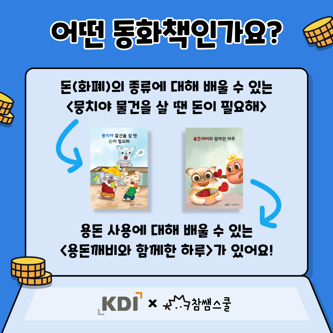 📚경제동화책 <뭉치야 물건을 살 땐 돈이 필요해>는 6기 주효림 선생님이 <용돈깨비와 함께한 하루>는 3기 이윤희 선생님이 참여했습니다.