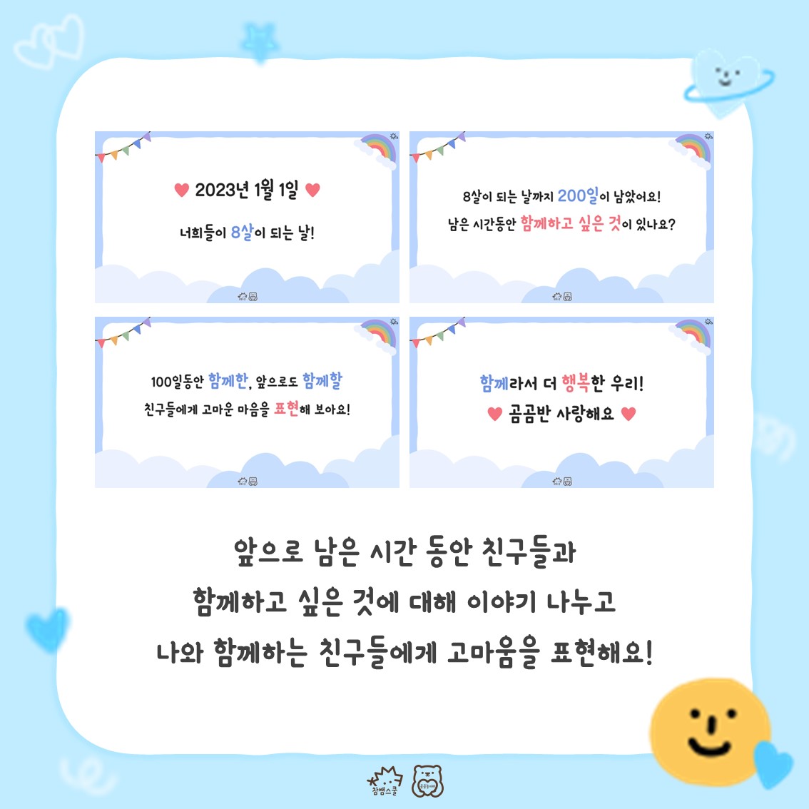 친구들과 서로 마음을 나누며 추억을 만들면 어떨까요?💓