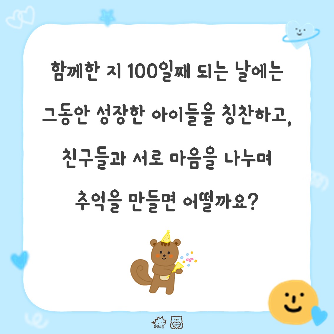 100일째 되는 날! 그동안 성장한 아이들을 칭찬하고,